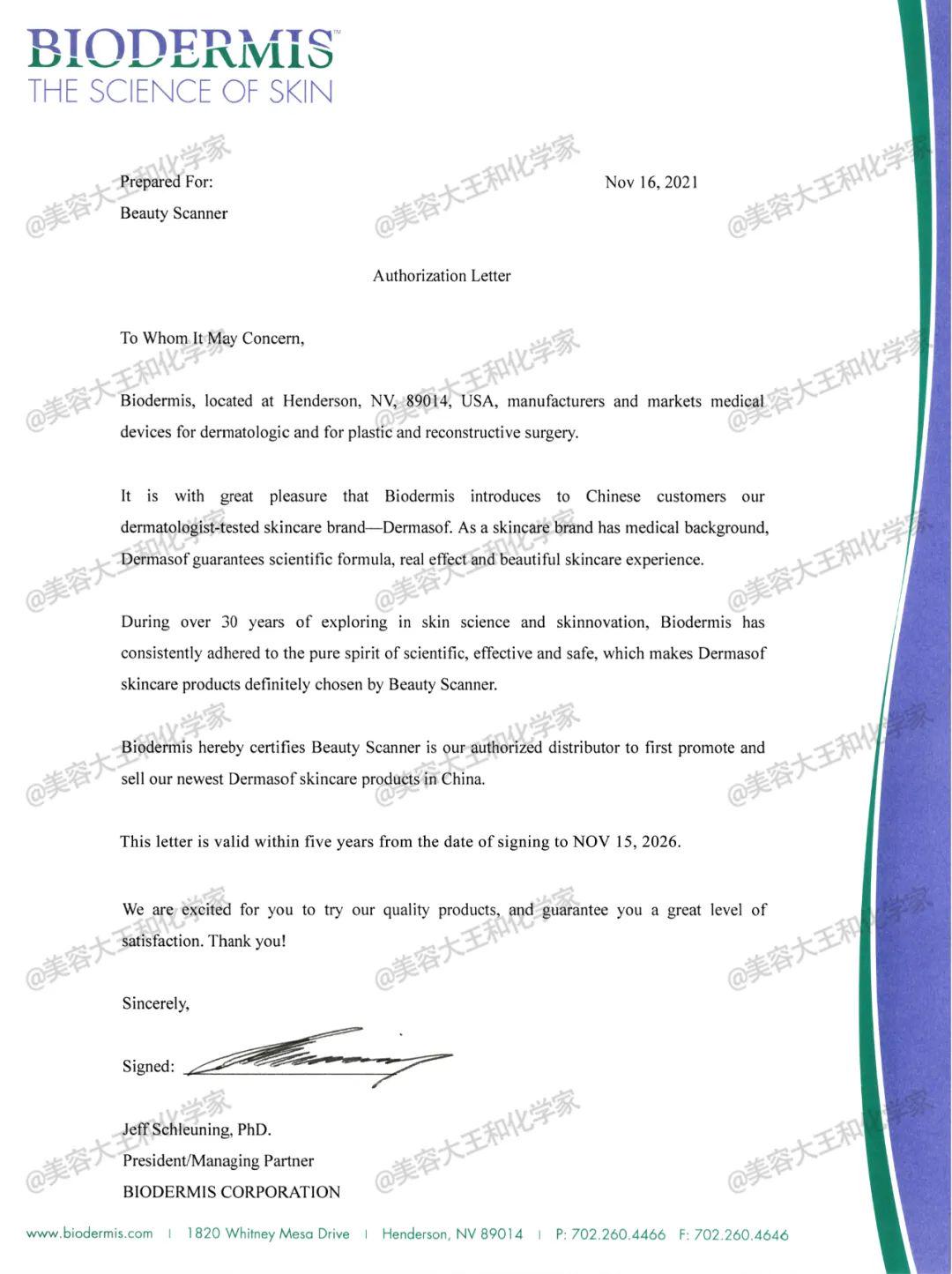 BIODERMIS的president/managing partner(Jeff S.Schleuning,Ph.D),专为我们beauty scanner的读者录制了视频