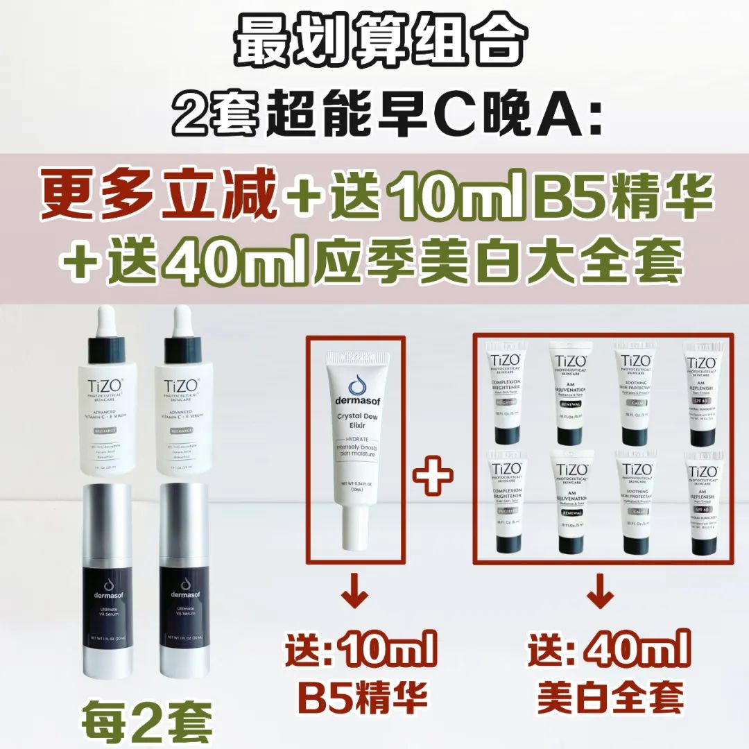 为了让大家不用费心考虑搭配,协同增效并获得最大幅度的优惠,本团特意将「超能早C晚A组」的两个产品一起补货, 并安排了首次套装立减!